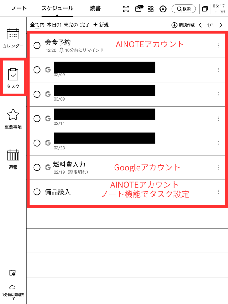 このAINOTEの「ノート」と「タスク」が同期する機能で、上記の手順が一元化されます。