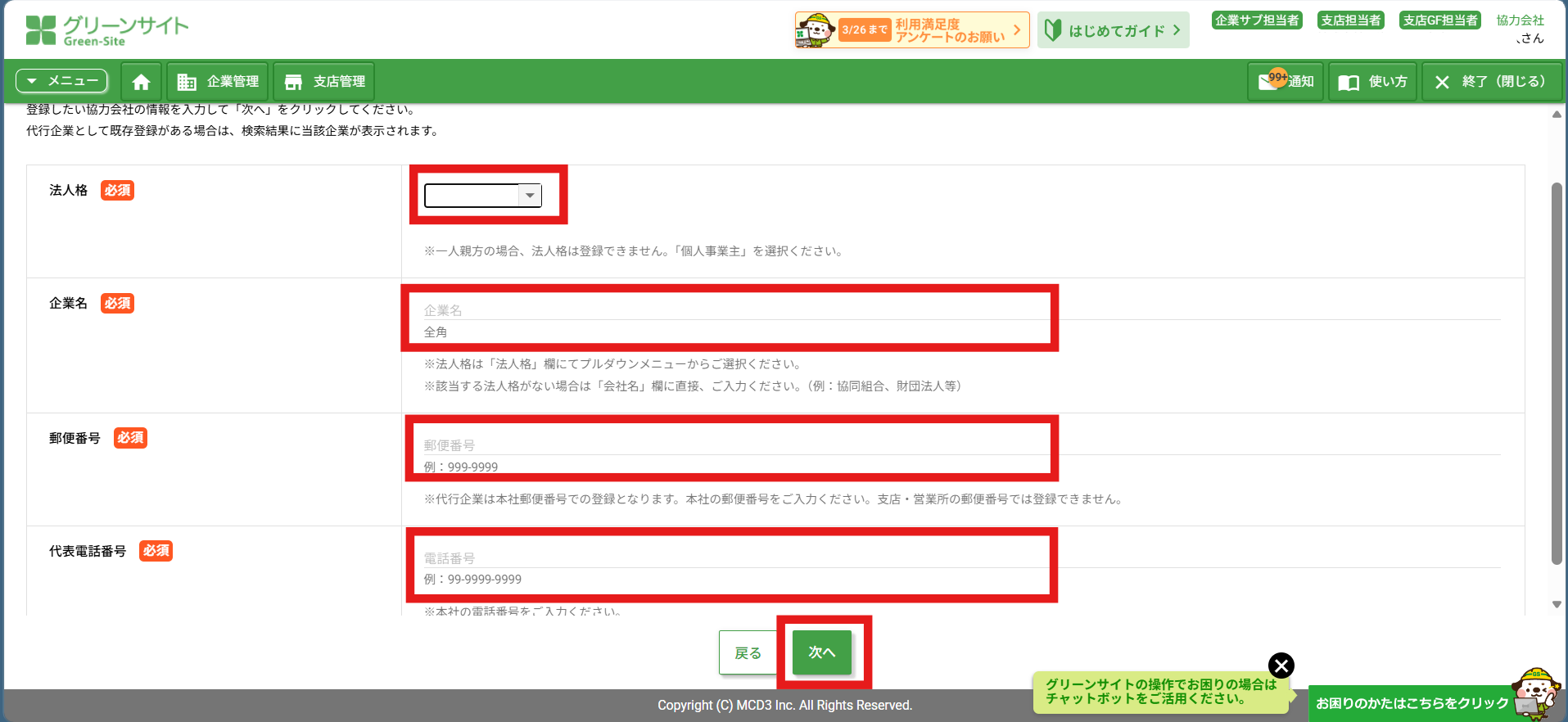グリーンサイトに招待されたことのない会社のデータを登録し、代行契約できる「代行企業」として登録します。