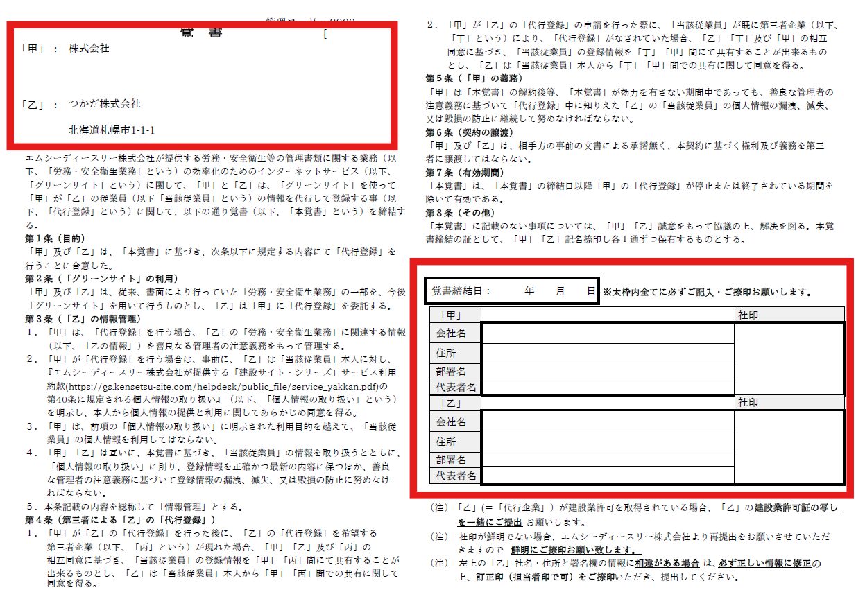 一度代行契約をした企業と再度代行契約する場合は、「覚書」の取り交わしは不要です。グリーンサイトにデータとして残っていますので、「覚書」の取り交わしはスキップされます。